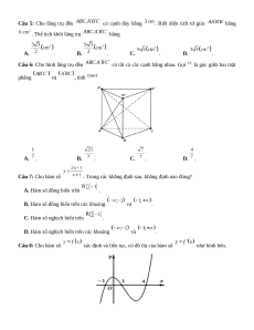 có tất cả các cạnh bằng nhau. Gọi là góc giữa hai mặt phẳng và , tính A. . B. . C. . D. . Câu 7: Cho hàm số