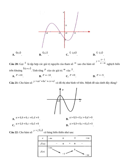 Câu 16: Điểm nào dưới đây không thuộc đồ thị của hàm số A. Điểm . B. Điểm . C. Điểm . D. Điểm .