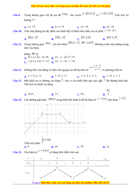 Trang 2 Mọi thắc mắc xin vui lòng xin liên hệ hotline: 084 283 45 85 Hàm số