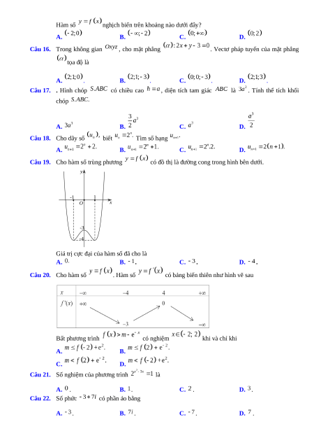 Câu 21. Số nghiệm của phương trình là A. . B. . C. . D. . Câu 22. Số phức có phần ảo bằng A. . B. . C. . D. .