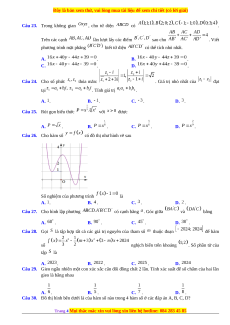 Câu 23. Trong không gian , cho tứ diện có . Trên các cạnh