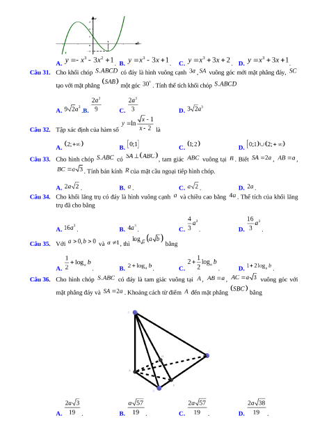 Câu 30. Đồ thị hình bên dưới là của hàm số nào trong 4 hàm số ở các đáp án A, B, C, D?