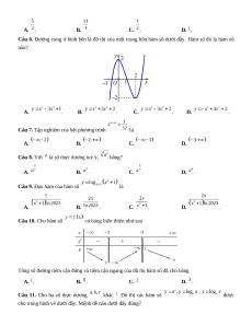 Câu 9. Đạo hàm của hàm số là A. . B. . C. . D. . Câu 10. Cho hàm số