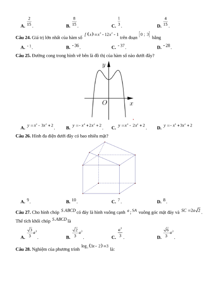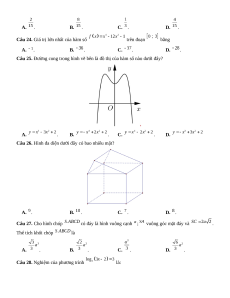 Câu 4. Thể tích của khối chóp có chiều cao bằng và diện tích đáy bằng là A. . B. . C. . D. . Câu 5. Cho hàm số