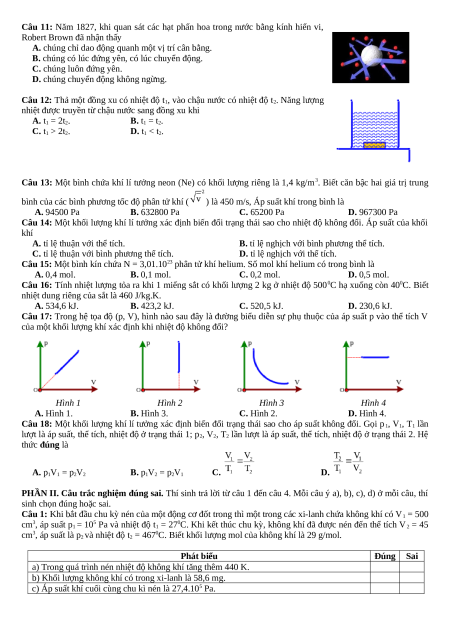 Câu 11: Năm 1827, khi quan sát các hạt phấn hoa trong nước bằng kính hiển vi,