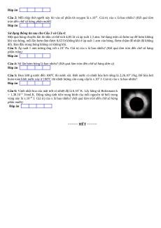 Câu 6: Trong một động cơ điezen, khối khí (coi là khí lí tưởng) có nhiệt độ ban đầu là 320C được nén để thể