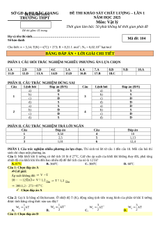 Câu 15: Một bình kín chứa N = 3,01.1023 phân tử khí helium. Số mol khí helium có trong bình là A. 0,4 mol. B. 0,1 mol. C. 0,2 mol. D. 0,5 mol.