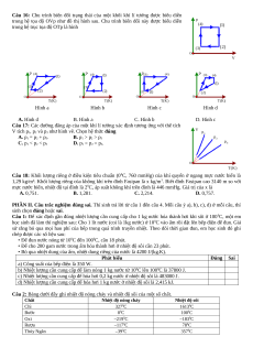 Câu 17: Các đường đẳng áp của một khí lí tưởng xác định tương ứng với thể tích