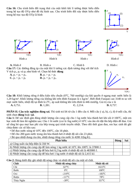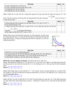 Câu 2: Một khối khí lí tưởng xác định có các thông số trạng thái áp suất p, thể tích V và nhiệt độ T. Khi khối