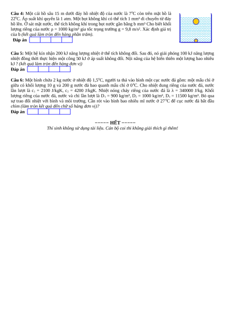 Câu 2: Khối lượng riêng của một chất khí là = 6.10-2 kg/m³, vận tốc căn quân phương của các phân tử khí