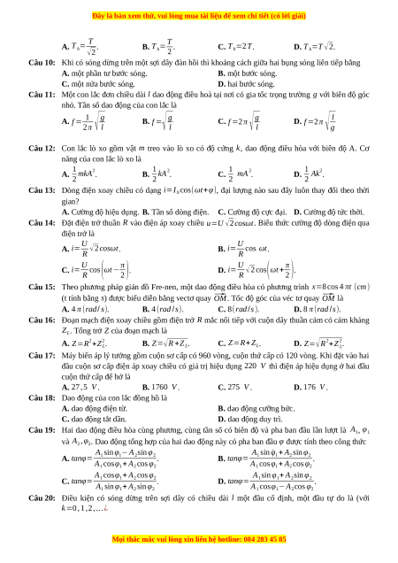 Câu 10: Khi có sóng dừng trên một sợi dây đàn hồi thì khoảng cách giữa hai bụng sóng liên tiếp bằng