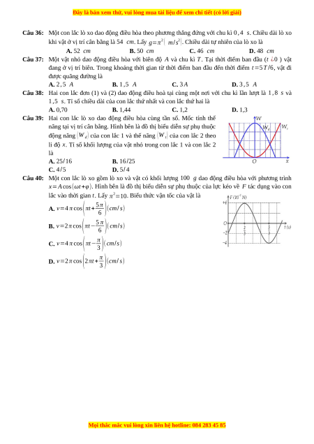 Câu 39: Hai con lắc lò xo dao động điều hòa cùng tần số. Mốc tính thế