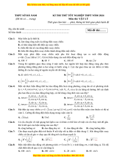 Đề thi thử tốt nghiệp Vật lí Sở Hà Nam năm 2024