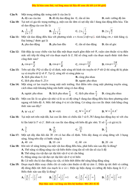D. (k+1)λ với k=0,±1,±2,… 4 2 Câu 4: