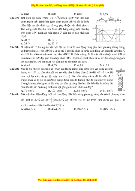 Câu 28: Tại mặt thoáng của một chất lỏng có hai nguồn sóng S1 và S2 dao động theo phương thẳng