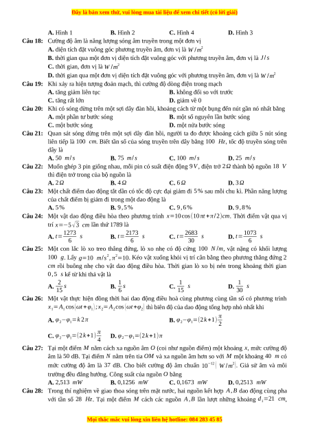 Câu 18: Cường độ âm là năng lượng sóng âm truyền trong một đơn vị