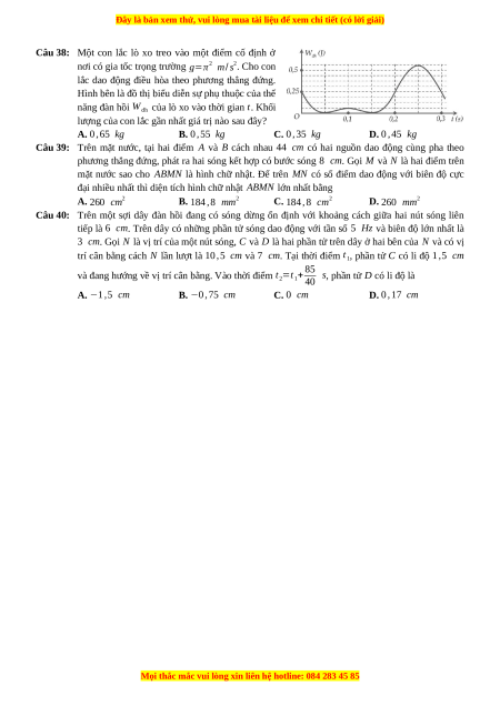 Câu 28: Trong thí nghiệm về giao thoa sóng trên mặt nước, hai nguồn kết hợp A , B dao động cùng pha