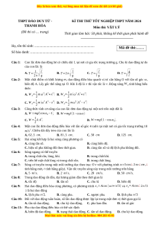 KÌ THI THỬ TỐT NGHIỆP THPT NĂM 2024 THANH HÓA Môn thi: VẬT LÝ