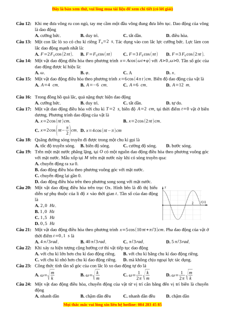 Câu 22: Khi xảy ra hiện tượng cộng hưởng cơ thì vật tiếp tục dao động