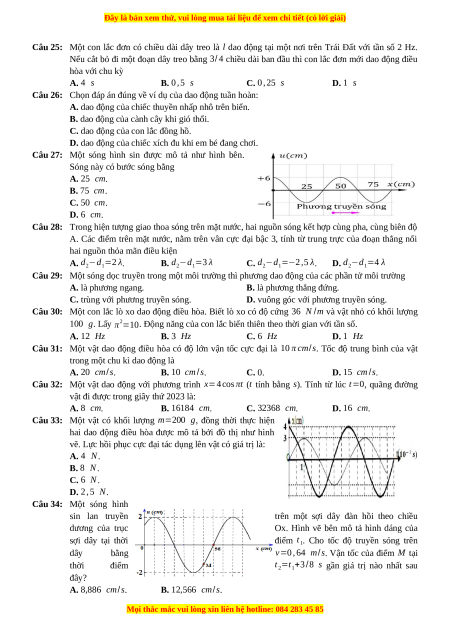 Câu 33: Một vật có khối lượng m=200 g, đồng thời thực hiện