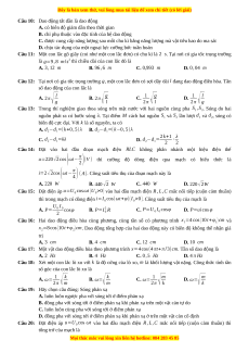 Câu 14: Đặt vào hai đầu đoạn mạch điện RLC không phân nhánh một hiệu điện thế