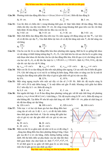 Câu 26: Dao động của một vật lả tổng hợp của hai dao động điều hoà cùng phương, cùng tần số, biên độ