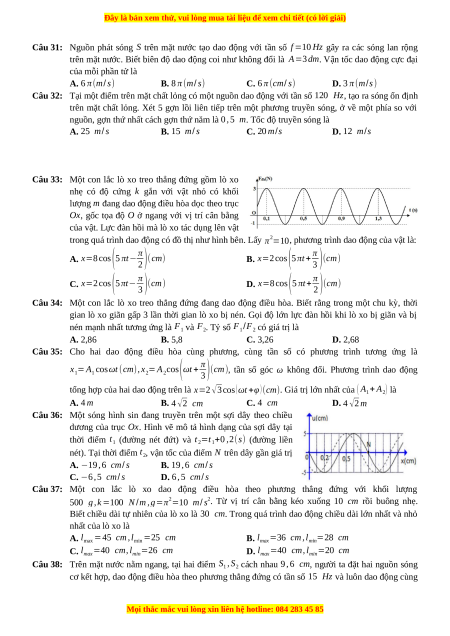 Câu 33: Một con lắc lò xo treo thẳng đứng gồm lò xo