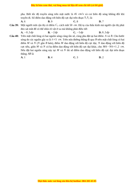 Câu 38: Trên mặt nước nằm ngang, tại hai điểm S , S 1