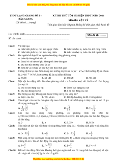 KÌ THI THỬ TỐT NGHIỆP THPT NĂM 2024 BẮC GIANG Môn thi: VẬT LÝ