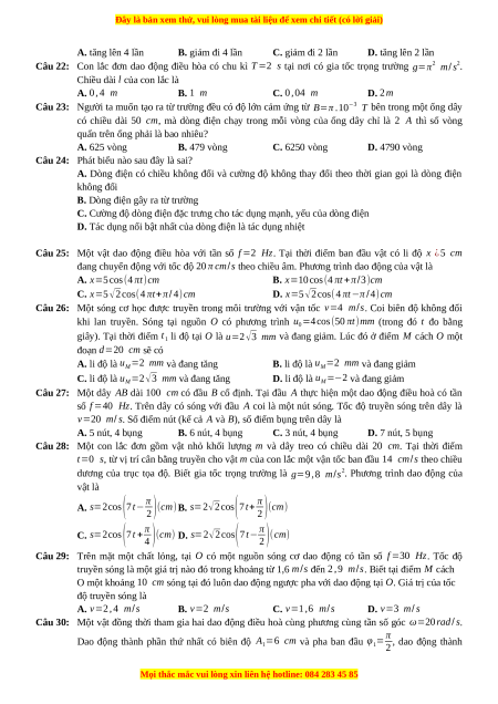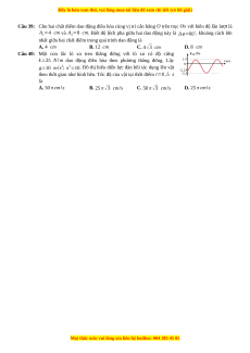 Câu 30: Một vật đồng thời tham gia hai dao động điều hoà cùng phương cùng tần số góc ω=20 rad/ s.