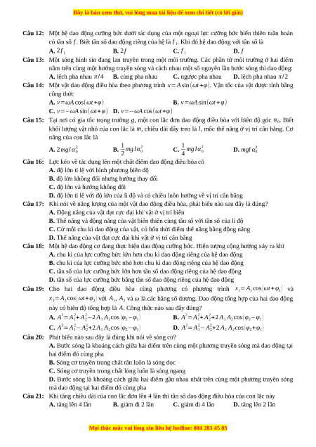 Câu 12: Một hệ dao động cưỡng bức dưới tác dụng của một ngoại lực cưỡng bức biến thiên tuần hoàn