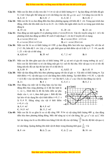 Câu 39: Dao động của một vật là tổng hợp của hai dao