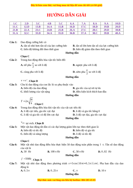 Số báo danh: ......................................................................... Câu 1: Dao động cưỡng bức có