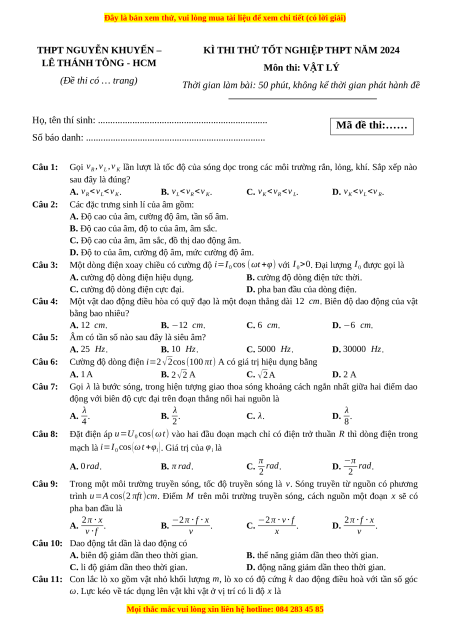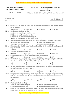 Đề thi thử tốt nghiệp Vật lí trường THPT Nguyễn Khuyến - Lê Thánh Tông - HCM năm 2024