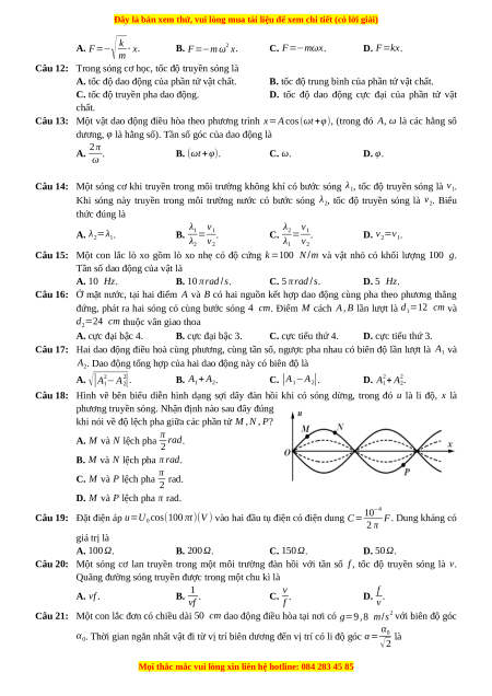 Câu 36: Một sóng hình sin lan truyền trên một sợi dây đàn