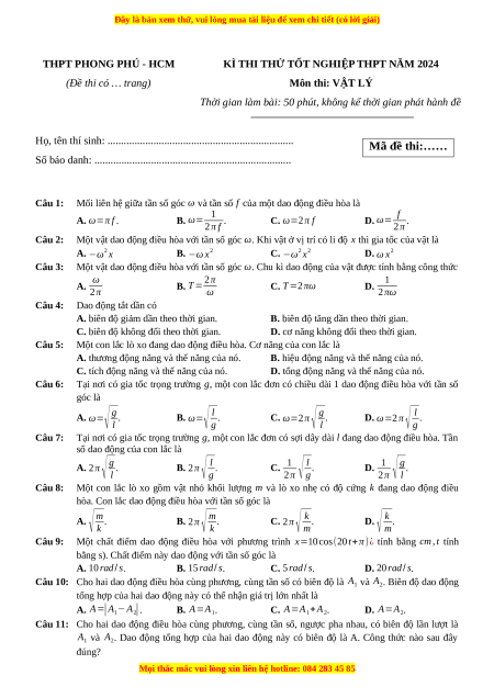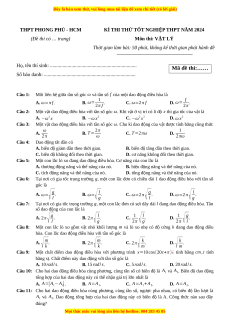 Đề thi thử tốt nghiệp Vật lí trường THPT Phong Phú - HCM năm 2024