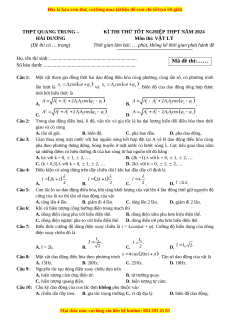 Đề thi thử tốt nghiệp Vật lí trường THPT Quang Trung - Hải Dương năm 2024
