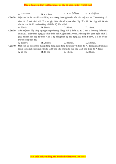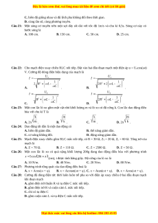 Câu 21: Một sóng cơ truyền trên một sợi dây rất dài với tốc độ 1m/s và chu kì 0,5s. Sóng cơ này có bước sóng là A. 100 cm. B. 150 cm. C. 50 cm. D. 25 cm.