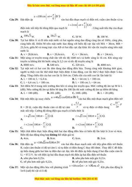 Câu 28: Cường độ dòng điện tức thời luôn luôn trễ pha so với điện áp xoay chiều ở hai đầu đoạn mạch khi đoạn mạch