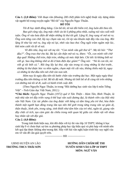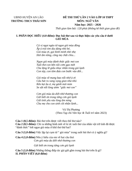Đề thi thử vào 10 Ngữ Văn năm 2025 THCS Thái Sơn (Huyện An Lão) Lần 2