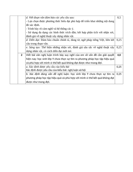 cầu cơ bản của đáp án thì vẫn cho điểm như Đáp án - Hướng dẫn chấm. Điểm từng câu