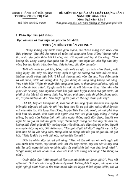 Đề thi thử vào 10 Ngữ Văn năm 2025 THCS Thị Cầu (Bắc Ninh) Lần 1