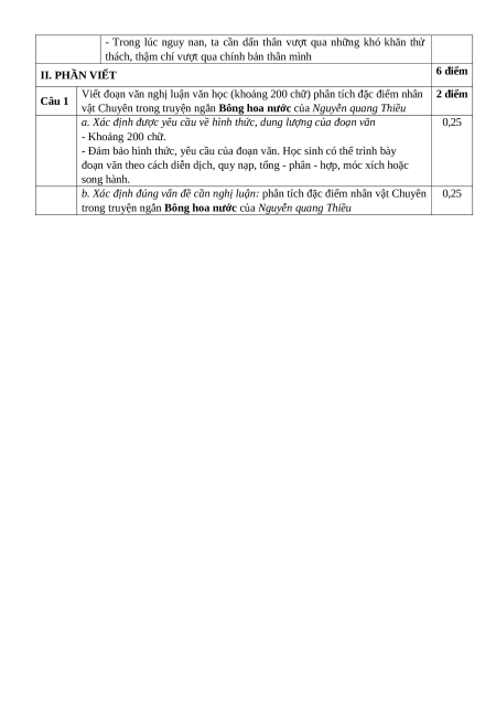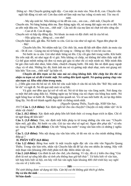 tác dụng? Câu 4. (0,5 điểm): Chi tiết “bông hoa nước” trong văn bản trên có những ý nghĩa gì?