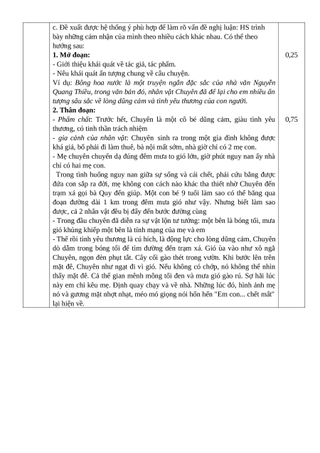 - Bông hoa nước mang vẻ đẹp huyền ảo, trong sáng, xa vời khó với 0,25 Câu 4 được 0,25 (0,5 điểm)