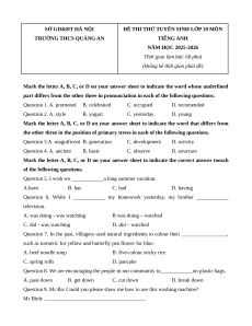 ĐỀ THI THỬ TUYỂN SINH LỚP 10 MÔN