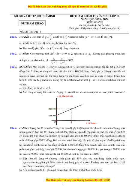 Đề thi thử vào 10 Toán TP.HCM năm 2023-2024 có đáp án