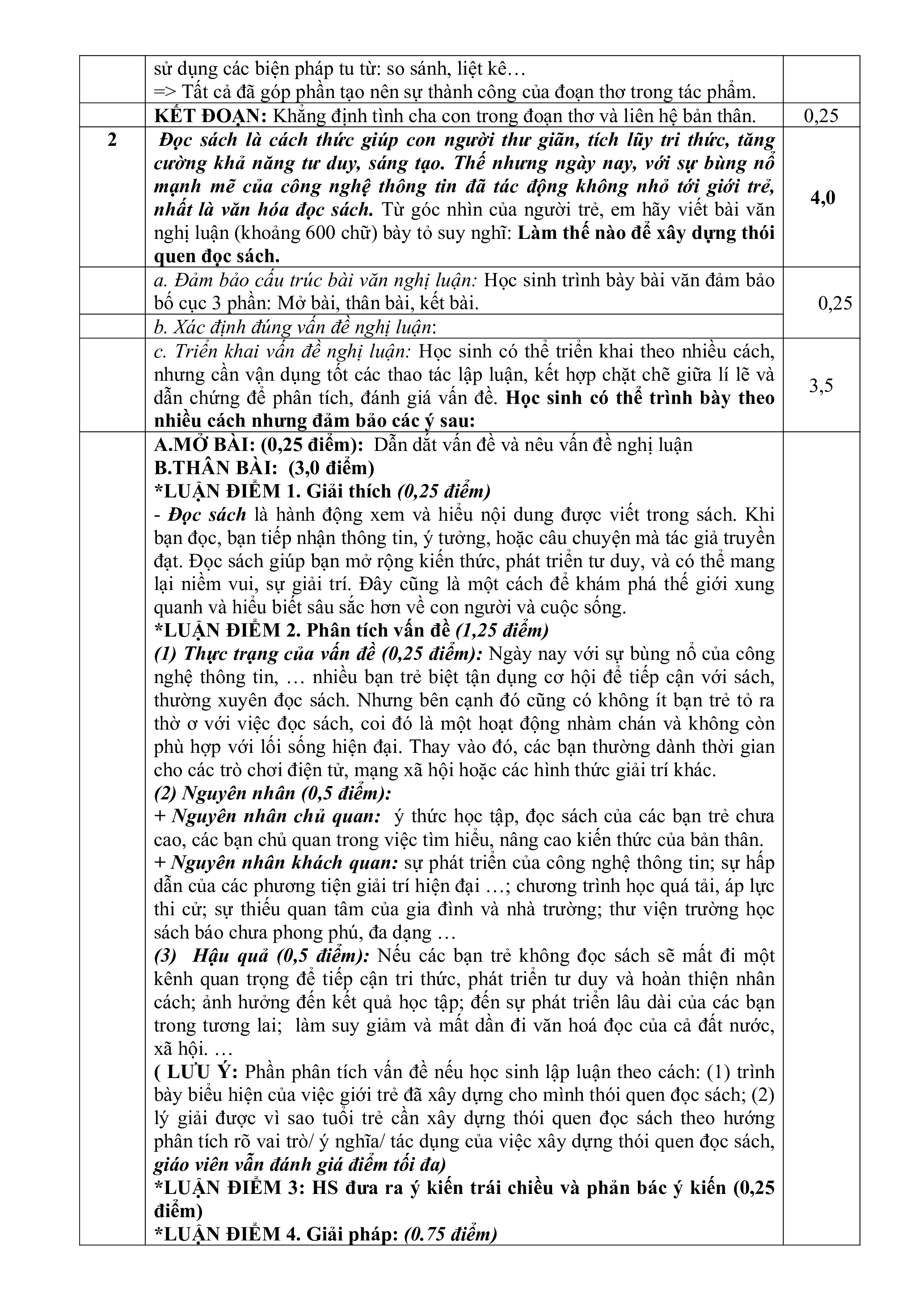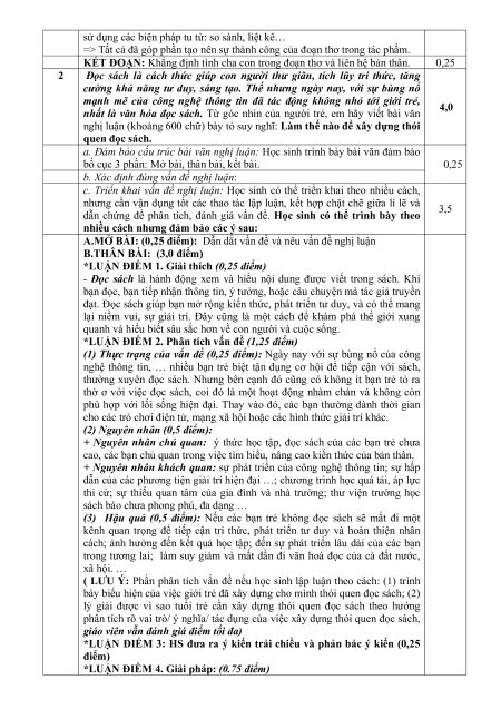 Câu 2 (4,0 điểm). Đọc sách là cách thức giúp con người thư giãn, tích lũy tri thức, tăng