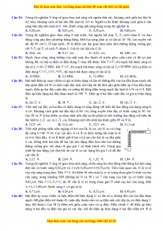 từ 2 khe đến màn quan sát là D, ánh sáng đơn sắc dùng trong thí nghiệm có bước sóng λ. Công thức tính khoảng vân là a λD λa aD A. i= . B. i= . C. i= . D. i= . λD a D λ Câu 6: