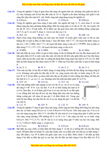 Câu 40: Đặt điện áp xoay chiều có hiệu điện thế hiệu dụng