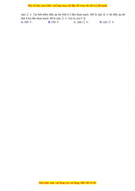 . Tại thời điểm điện áp tức thời ở 2 đầu đoạn mạch
